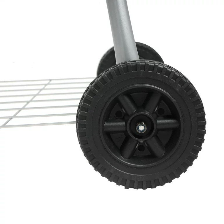 22" square charcoal grill comes with a black foldable side frame and wheels, making it the perfect choice for your next barbecue activity. The grill has a total of 600 square inches of cooking space. The main cooking surface is 440 square inches, made of ceramic coated steel, durable and easy to clean, enough to eat 23 hamburgers or all your favorite barbecue foods at once. The eel grill provides an additional 160 square inches of supplementary cooking space. The grill also comes with a steel ceramic coating The layer charcoal grille, fire bowl, and hinge cover have excellent performance and durability. The two adjustable dampers on the fire bowl and an adjustable baffle on the lid help control the barbecue temperature, allowing more or less oxygen to be present during the barbecue. The foldable side shelf with integrated tool holder provides additional space during food preparation or serving, and can be folded for storage. With a locked lid and wheels on the hind legs, it is easy to operate the grill on the porch, terrace, or deck.