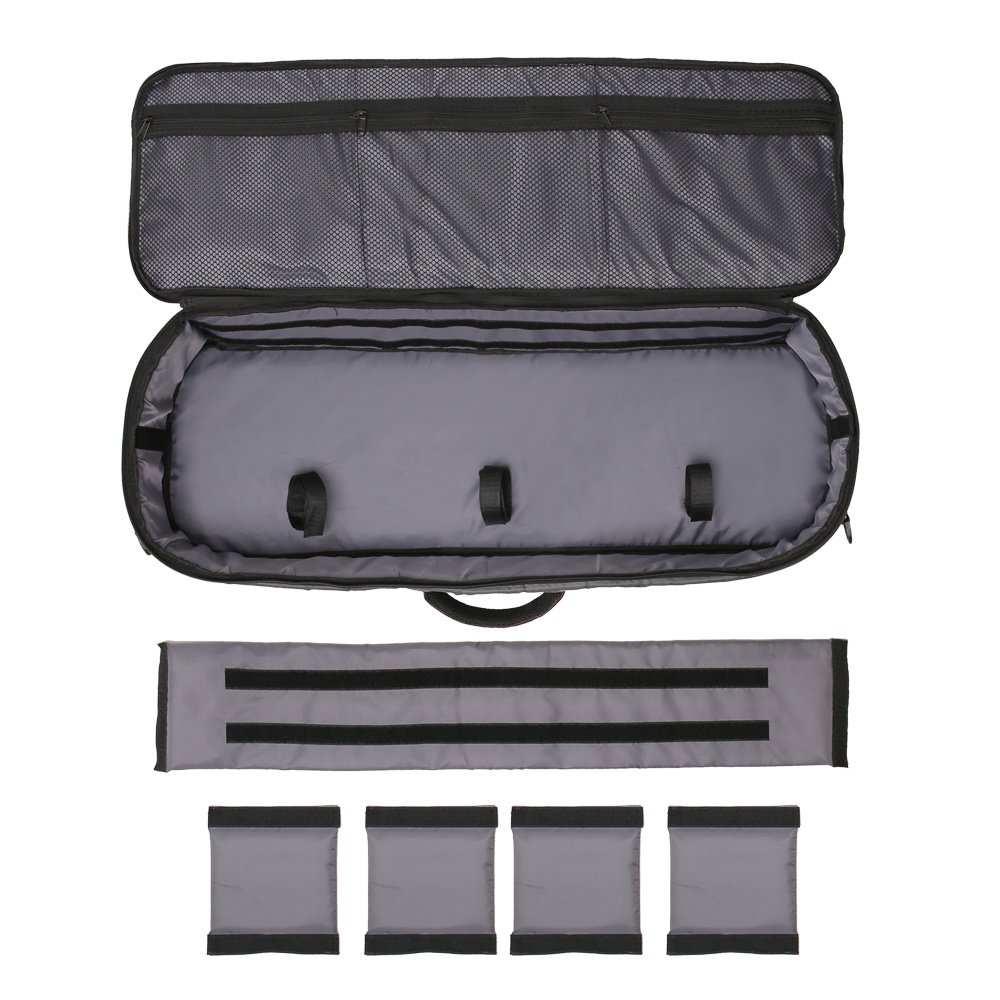 Outer dimensions: 31.5″ x 9.5″ x 6″. Main compartment inner dimensions: 30.5″ x 8.75″ x 3.75″.