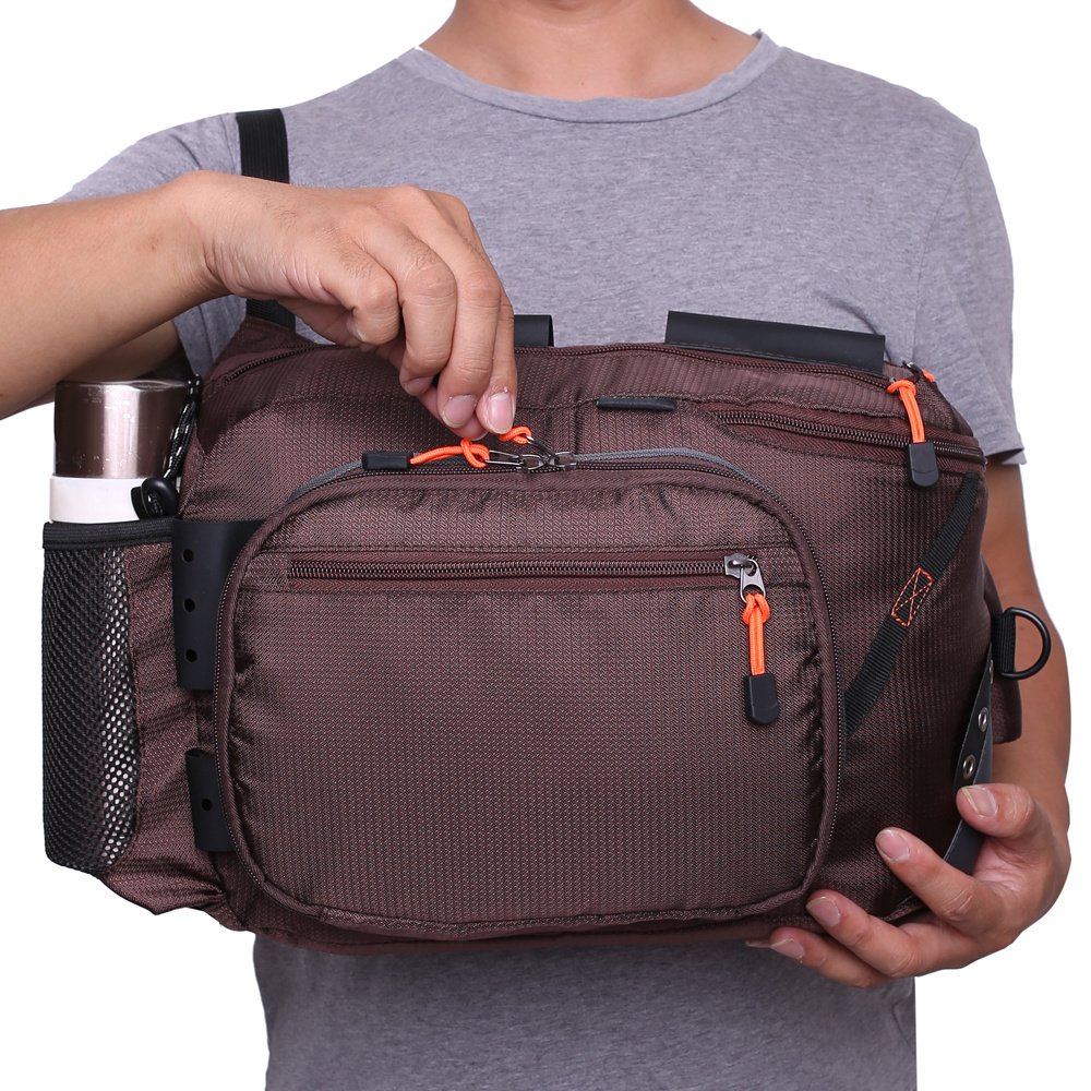 Fly fishing sling pack allows the angler to wear it over one shoulder, completely out of the way, while allowing quick and easy access to gear. This fishing tackle bag is equipped with adjustable padded shoulder straps for all-day comfort ,to satisfy your different needs for a fishing trip.