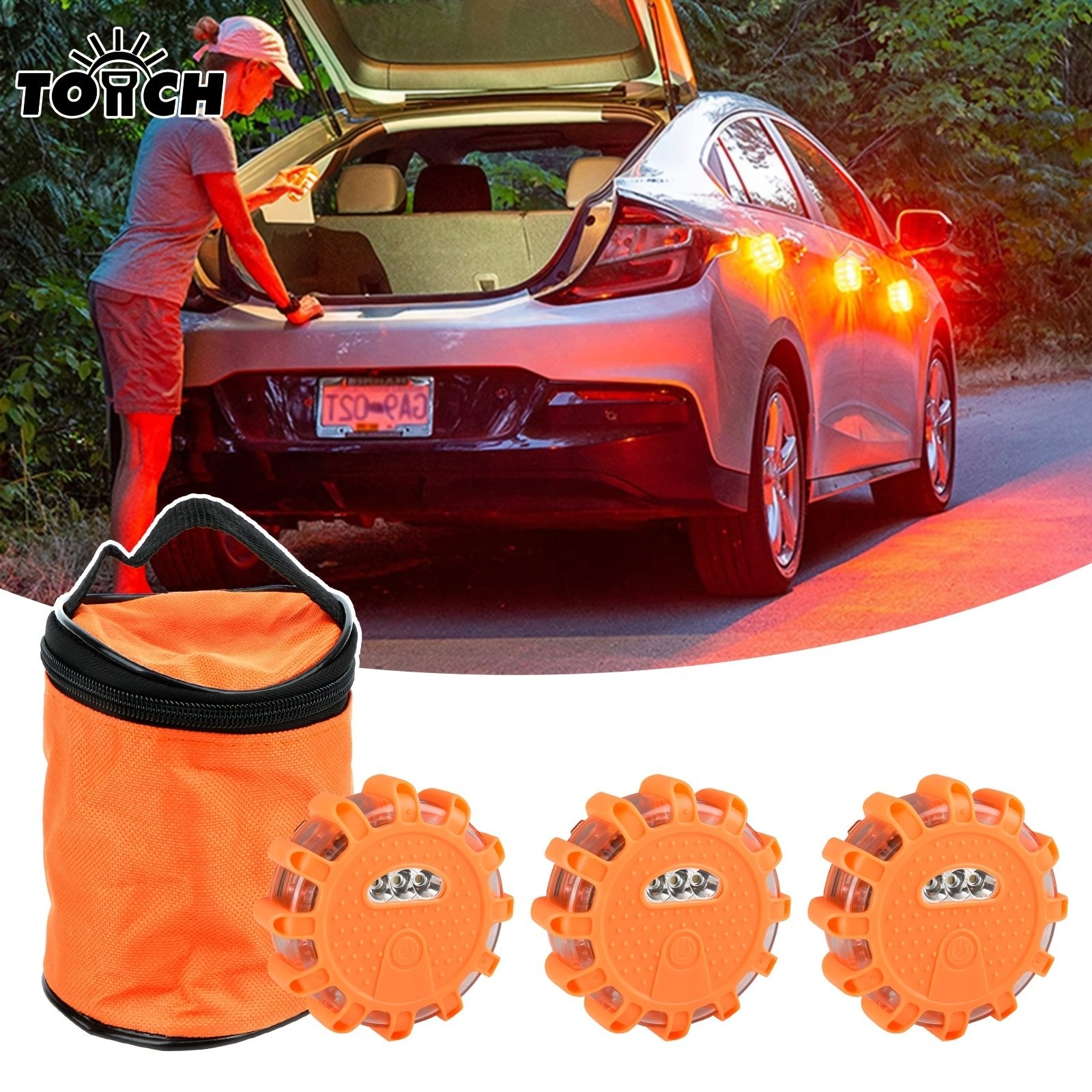 3/6/8 PACK Auto Emergency Lights Car Warning Light LED Flare Roadside Safety Puck With Magnet Hook; Include Work Flashlight With 3 Screwdrivers