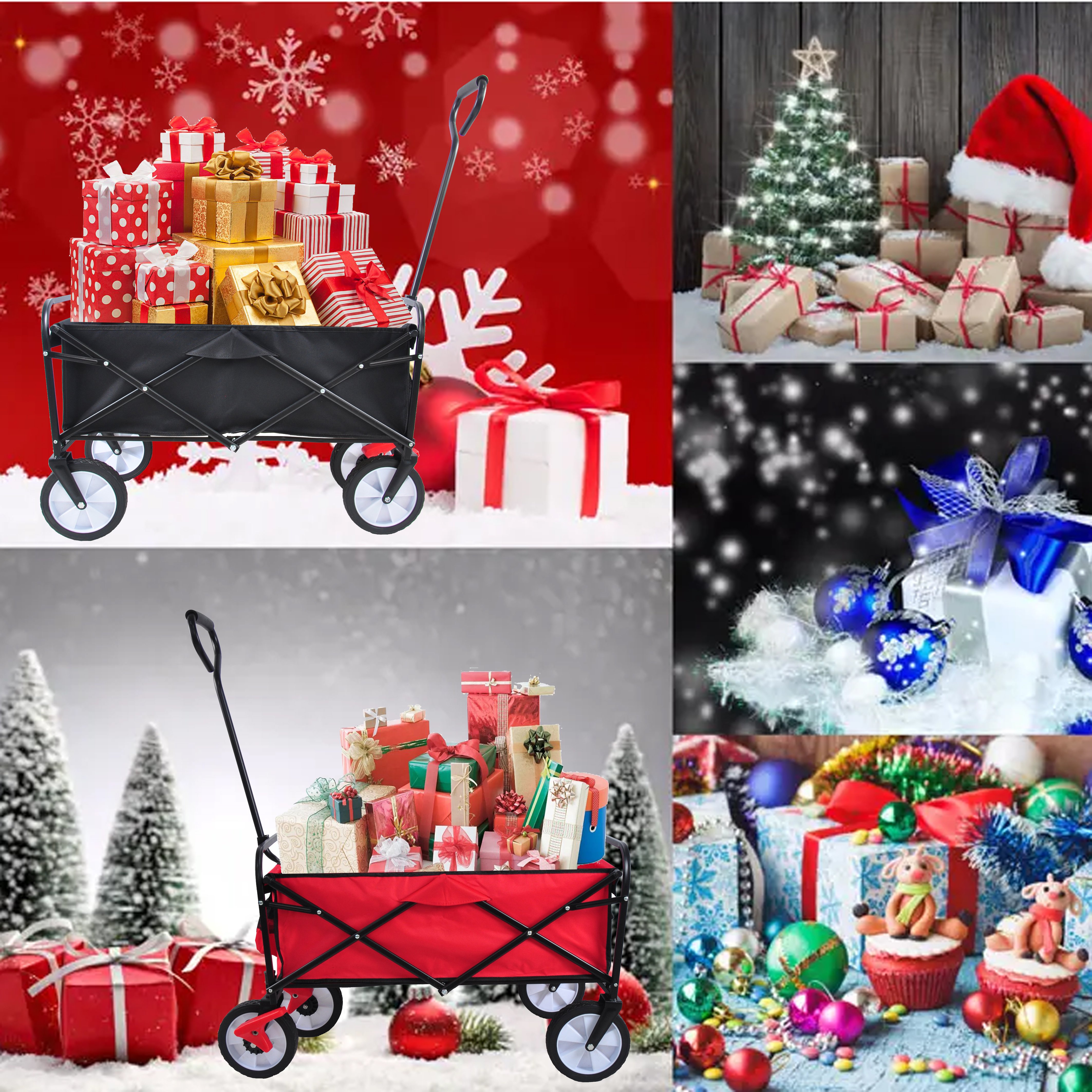 5.Outdoor wagon has internal pull rope design, a few seconds can easily fold and expand, without installation, simple operation. The wagon can be folded up to just 8” thick, about 30 "x21.2" x 9 " in folded size, and can be folded into a portable bag and space saving, or easily stored in a closet, garage or car trunk.