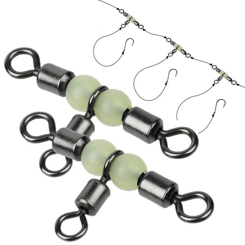 10/20/30/40pcs Cross Line Rolling Swivel With Pearl Luminous Beads; 3 Way Rigs Fishing Tackle Connector For Drifting Trolling