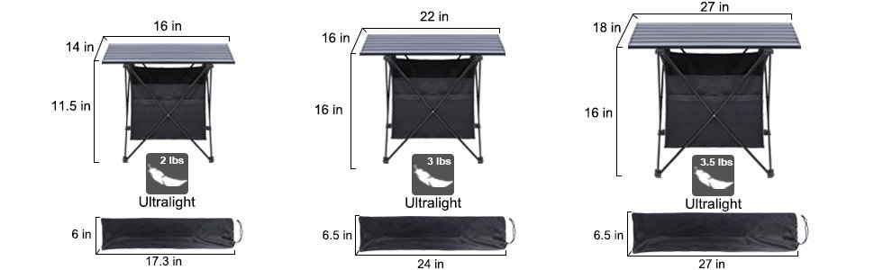 PORTABLE: This folding table only weight 3.5lbs, overall dimension 27×18×16 inch, folding size 27×2.8×6.5 inch. With a 27×6.5 inch carry bag, you can easily carry on your back or put it in the car trunk after folding.